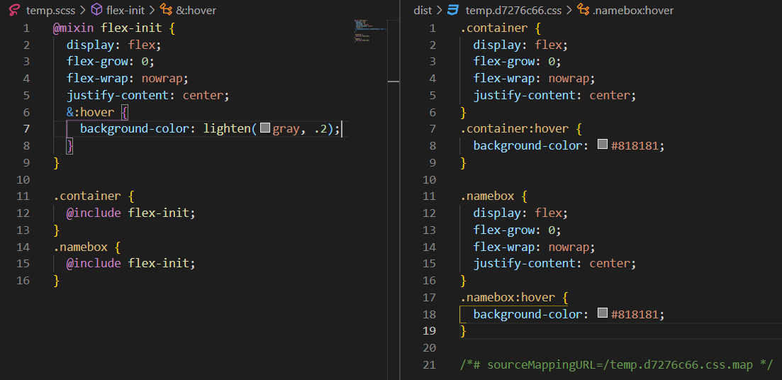@mixin과 비슷하다고 생각할 수 있지만 함수는 값을 반환하는 것이고, @mixin은 style을 반환합니다.