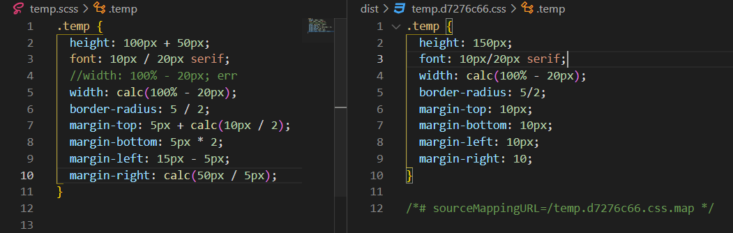주의: Dart SCSS 2.0.0 버전부터는 나누기 연산을 진행할때 calc() 내장함수를 꼭 사용해야합니다.