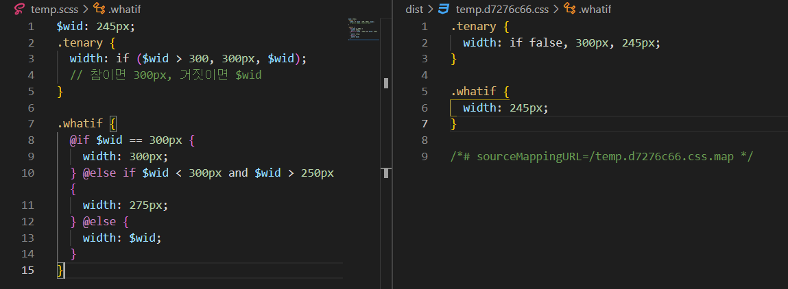 SCSS에서는 @if 조건문을 사용합니다. 논리 연산을 이때 사용 가능합니다.