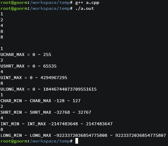 std::cout << "UCHAR_MAX = 0 ~ " << UCHAR_MAX << endl;