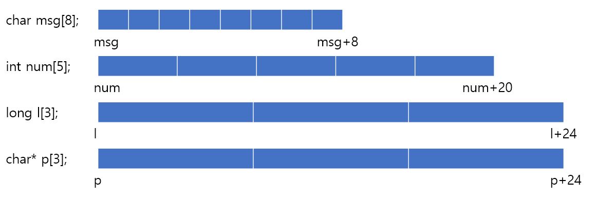 각각의 배열 명은 array의 시작 주소를 의미하므로 이렇게 만들 수 있다.