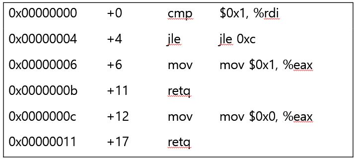 조건과 맞지 않아 0xc로 이동했다고 해보자. %rax 즉 %eax는 return value를 담는 레지스터이다. 따라서 숫자 0을 eax레지스터에 전달하고 0x11에서는 return을 하게 된다.