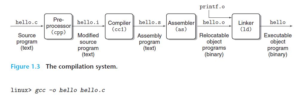 hello.c라는 text file이 우리가 실행할 수 있는 Executable Object가 되는 것이다.
