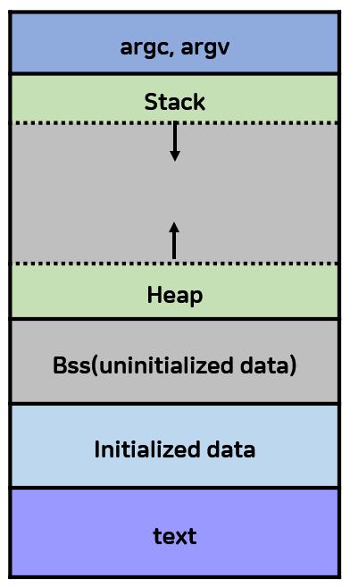 위의 그림은 대락적인 C Program에서의 Memory Layout이다. 시스템 프로그래밍의 Linking 쪽에서 한번 다루었으니 참고하면 좋을 것이다. 메모리에 프로그램이 올라갈 때는 모든 것이 이렇게 Segment 단위로 나누어 저장이 된다. 그림의 위쪽인 Higher Address이고 아래쪽이 Lower Address라고 생각하면 편할 것이다. 특히 중요한 것은 stack인데 이는 Execution Sequence에서 꼭 필요하다. Runtime시에 Stack이 Allocate 되고, Deallocate 된다. 또한 stack은 Procedure단위별로 생기기 때문에 동적으로 할당하는 이 부분이 필요하다. Heap부분에는 malloc 같은 동적 메모리 할당 관련 코드들이 들어가게 된다.