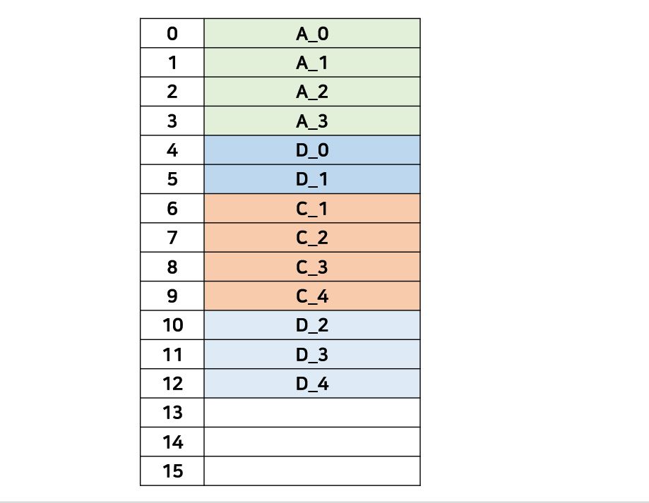 위와 같은 그림이 있다고 해보자. 만약 Process A가 16KB, Process B가 8KB, Process C가 16KB, Process D가 20KB를 가지고 있다고 해보자. Process A, B, C가 수행되다가 B가 끝나게 되고, 이제 D가 올라올 차례이다. B는 8KB만 사용하고 있던 것이 나갔으므로 Process D는 빈 자리에 일부 8KB의 Page를 넣고 나머지는 이어 붙이면 된다. 이렇게 한 메모리 상에서 연속적이 아니라 분역속적으로 Memory가 나눠쟈있기 때문에 Process가 Memory에 어디 있는지 관리할 필요성이 생겨야 한다는 것이다.